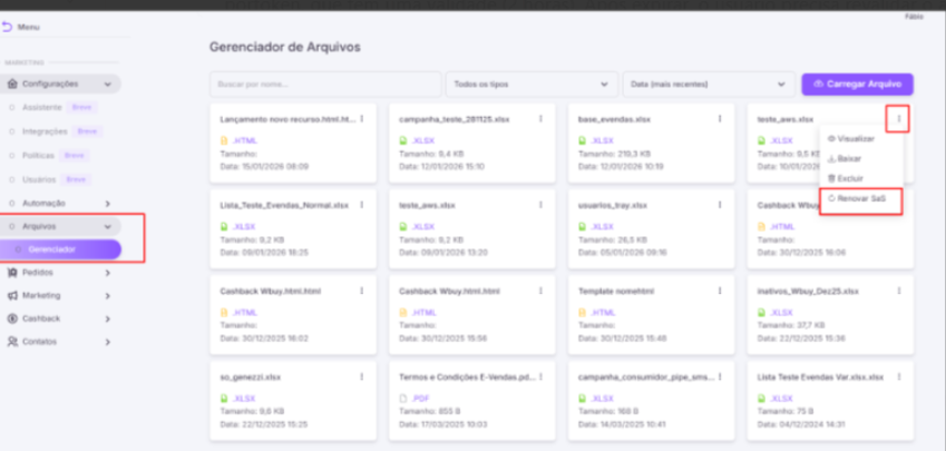 AENÇÃO: Os arquivos ficam disponíveis por 2h para serem disparados. Caso exceda este prazo basta atualizar novamente